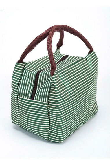 Фото товара 17051, термосумка для ланч-бокса в полоску «горячий обед» зеленая