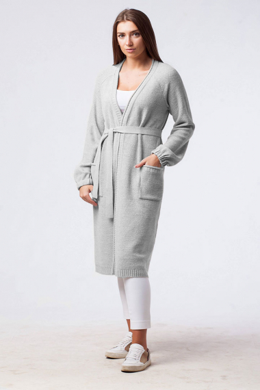 Фото товара 18808, серый кардиган с поясом
