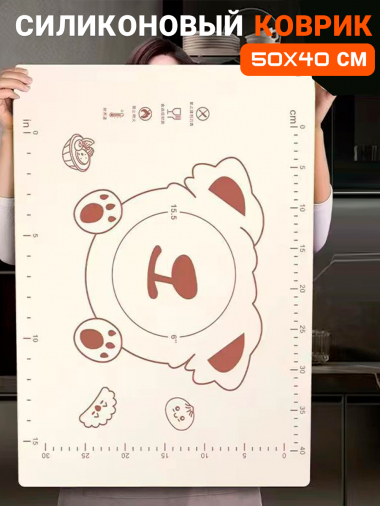 Фото товара 23933, силиконовый коврик для раскатки теста и выпечки с разметкой 50x40 см